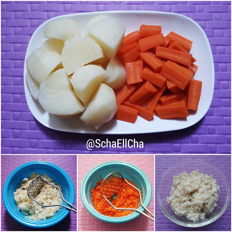 ▶️ Cuci bersih kentang dan carot. Kukus atau seteam hingga lembut.