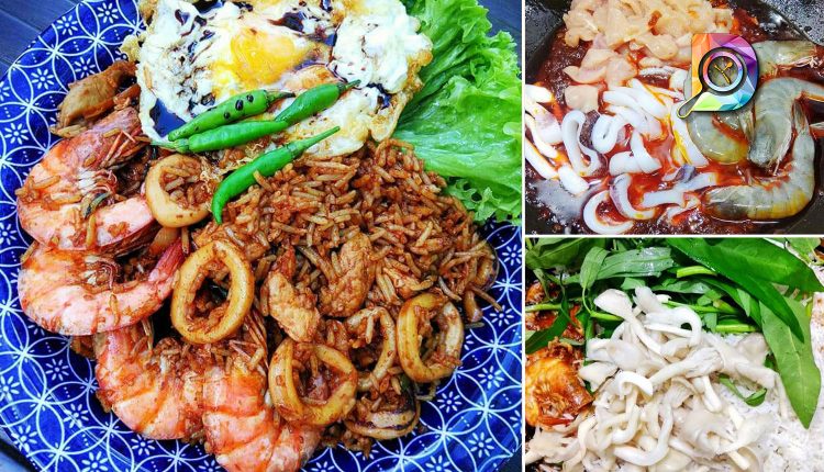 ▶️ Akhir sekali masukkan ayam, udang, sotong gaul rata dan kecilkan api reneh sekejap hingga udang hampir masak.