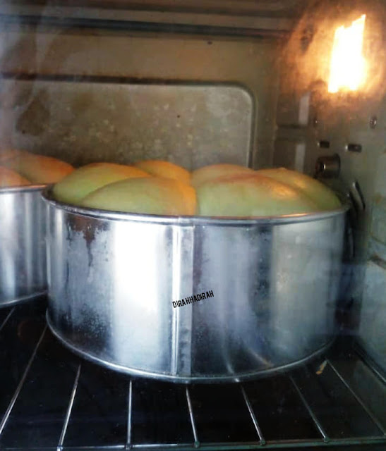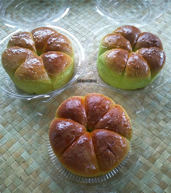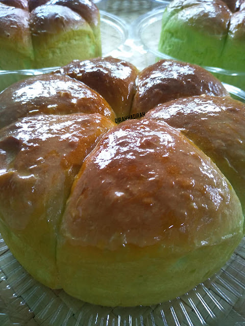 Puas hati betul bila dapat buat roti sendiri, yelah roti bukan senang nak buat walaupun bahan yang digunakan mudah je. Roti Manis pandan kalau dapat cicah dengan air teh panas atau kukus dengan kaya memang sedap!