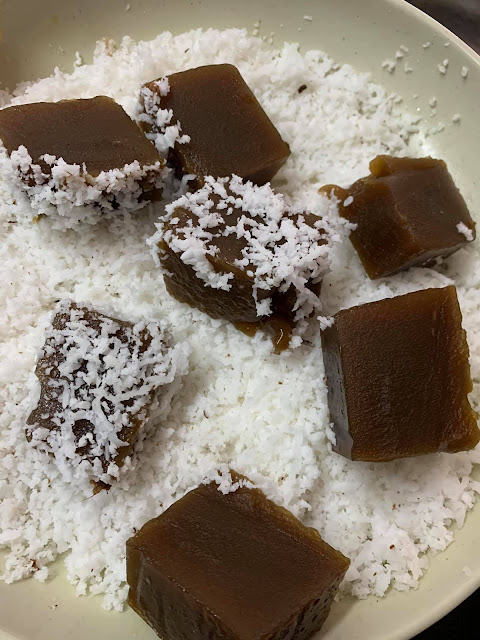 ▶️ Akhir sekali, biarkan kuih kaswi sejuk baru potong dan gaulkan dengan kelapa parut tadi.