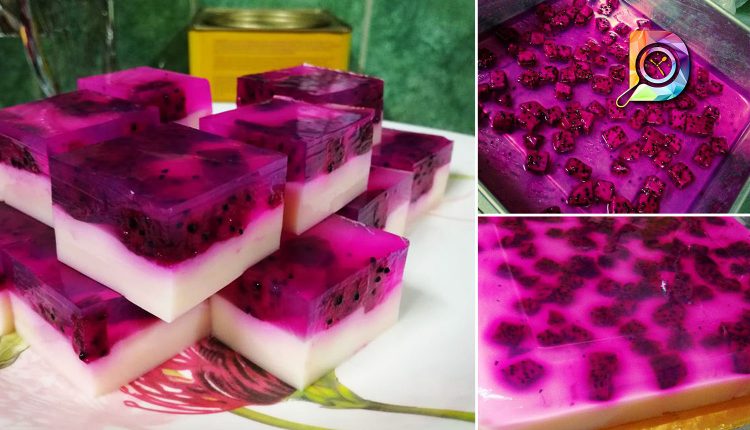 Resepi Puding Buah Naga. Hidangan Pencuci Mulut Yang Menyegarkan Dengan Menggunakan Buah-Buahan Segar!