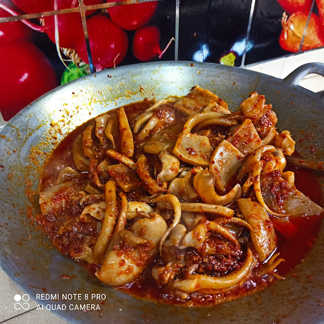 ▶️ Sambal dah tak perlu masukkan air, sebab air dari sotong akan turun.