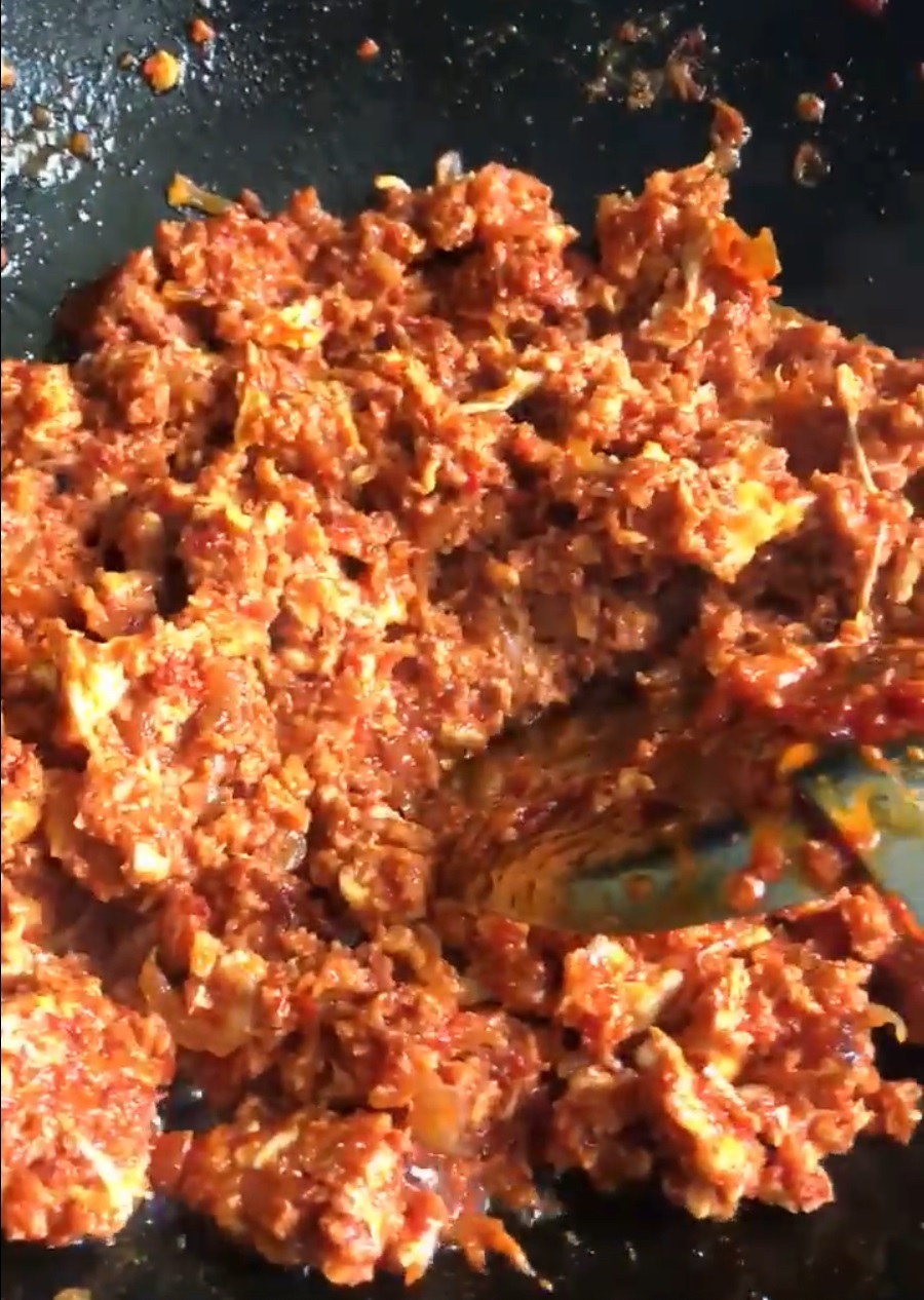 ▶️ Panas kan minyak. Tumis cili kering sampai naik minyak